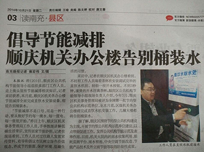新疆烏市、四川南充等地政府機(jī)關(guān)辦公樓已開展節(jié)約型公共機(jī)構(gòu)示范單位建設(shè),以點(diǎn)帶面促進(jìn)工作,發(fā)揮公共機(jī)構(gòu)節(jié)能示范及表率工作。艾迪衛(wèi)節(jié)能直飲水設(shè)備有幸參與到節(jié)能減排直飲水設(shè)備安裝項(xiàng)目中,并試點(diǎn)成功,為國家的節(jié)能減排工作盡一份綿薄之力?。ㄈ缦聢D為安裝現(xiàn)場)